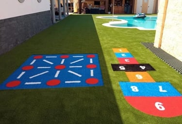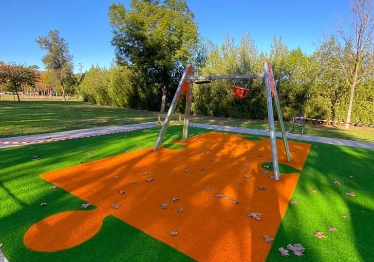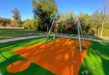 Césped resistente y seguro para parques, zonas de juego y áreas públicas.