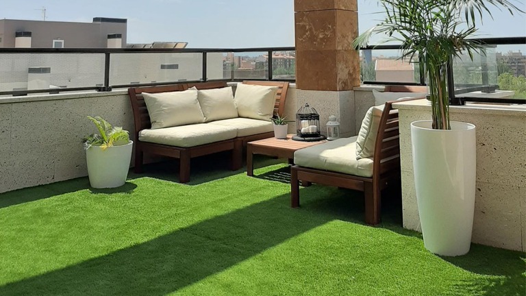 Instalamos césped artificial sobre tierra o superficies duras con acabado profesional.